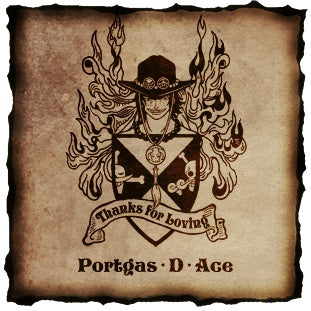 A fiery tribute to Ace’s lineage and spirit, bearing the flags of Roger and Whitebeard, surrounded by the blazing power of the Mera Mera no Mi.